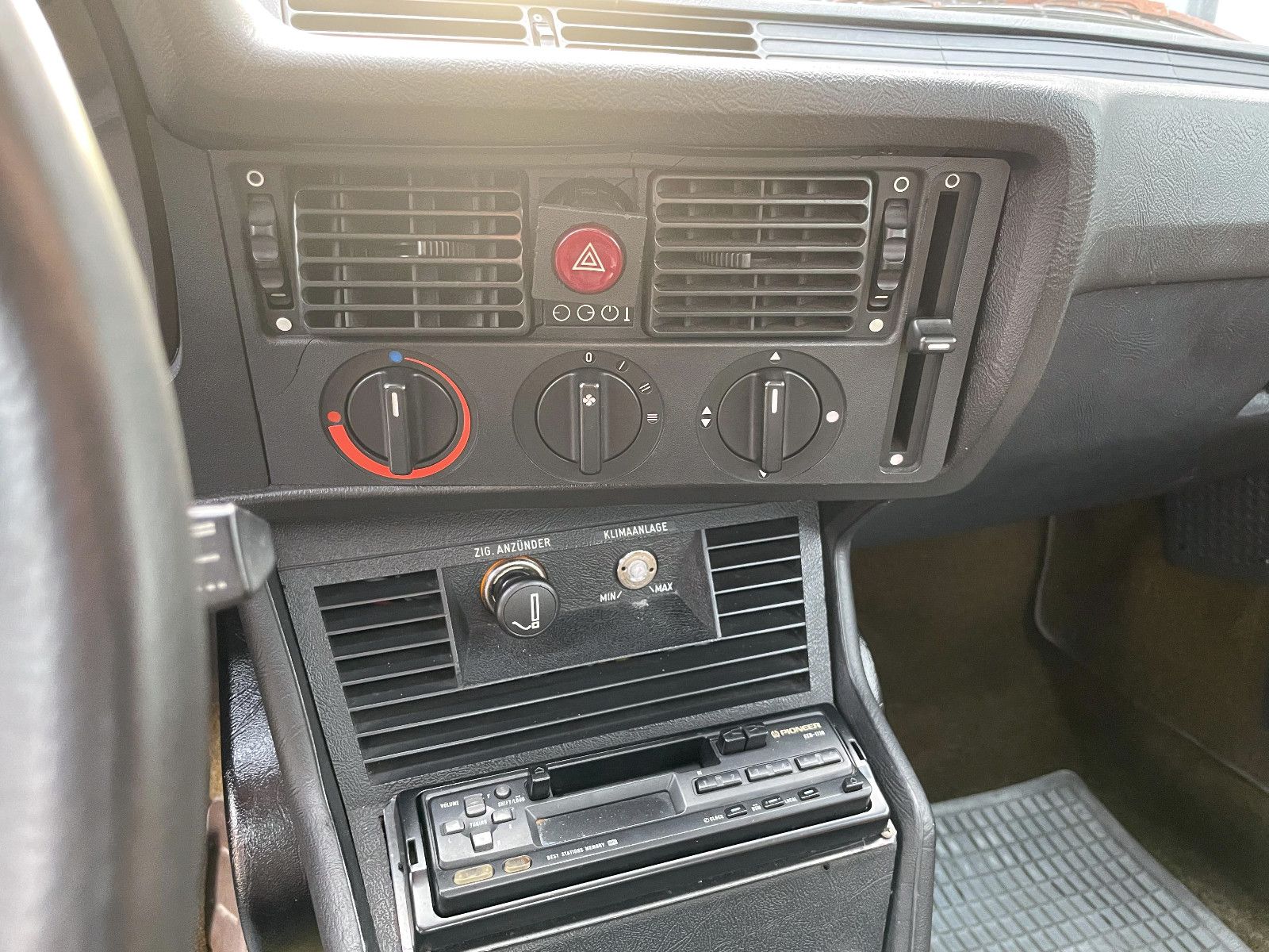 Der Innenraum präsentiert sich in einem gepflegten Zustand, lediglich das Armaturenbrett hat Risse.